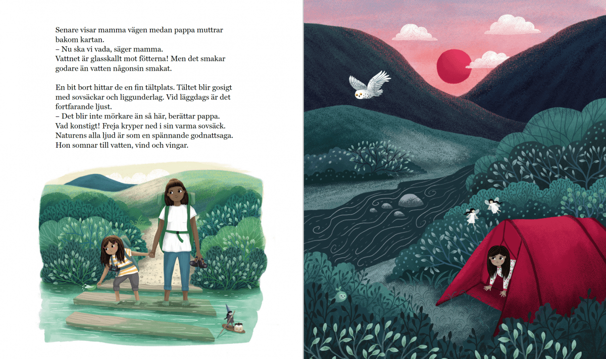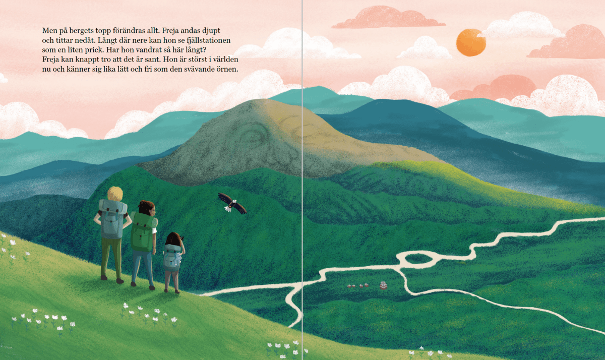 Frejas första fjällvandring är ett bilderboksäventyr som inspirerar till friluftsliv och naturupptäckter. Det är också en berättelse om att våga lite extra, om att tro på sig själv och om att våga möta naturen.