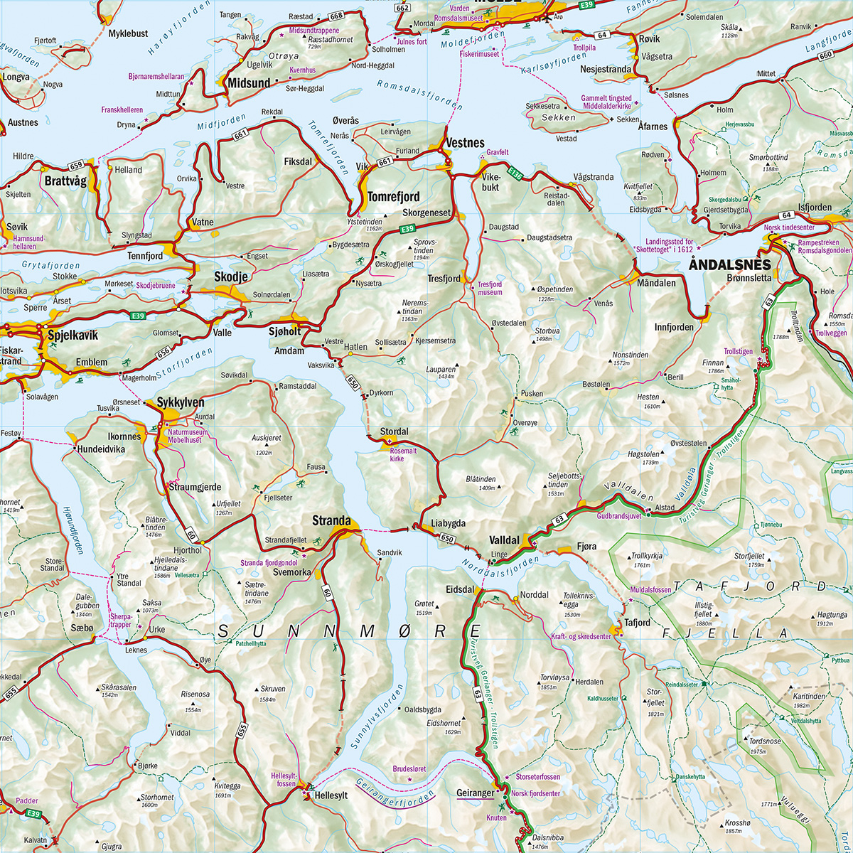 Nyt vejkort over Midtnorge – perfekt til bilferien! Oplev de smukkeste dele af Midtnorge med dette nye og opdaterede vejkort. Populære destinationer som Trondheim, Ålesund, Geiranger og Rondane er tydeligt markeret, sammen med nationale turistveje og områdets vigtigste seværdigheder.