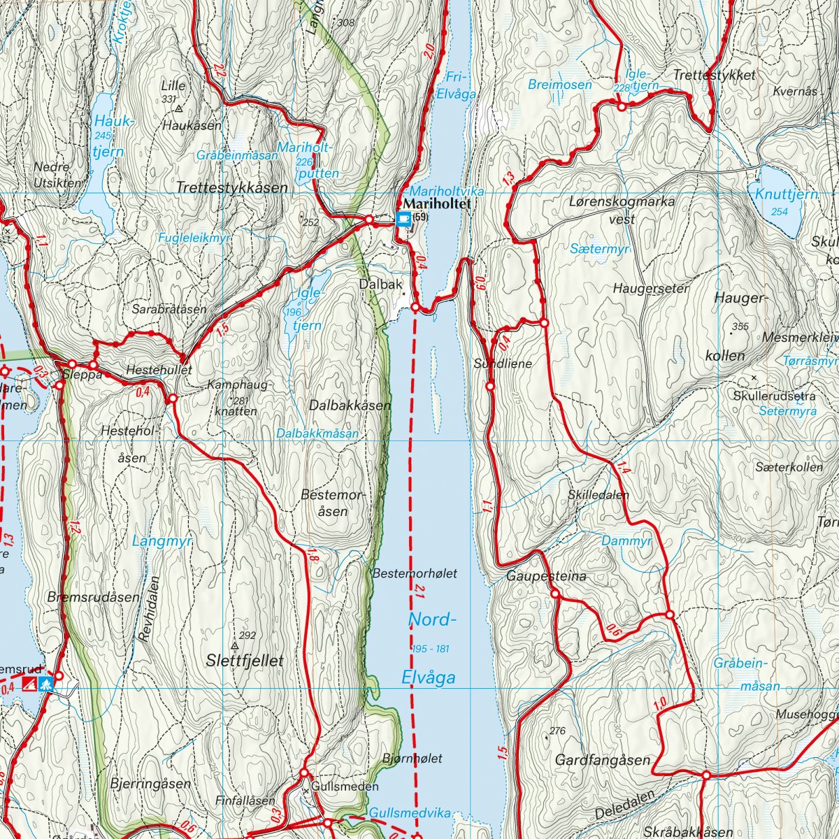 Hvert kart viser tydelig løypetyper og avstandsinformasjon, samt nyttige tillegg som parkeringsplasser, hytter og serveringssteder. Informasjonen er tilrette-lagt for enkel koordinering med sanntidsinformasjon på Skiforeningens nettside. Kartene er basert på terrengdata fra laserskanning fra fly, noe som sikrer enestående nøyaktighet i detaljene.