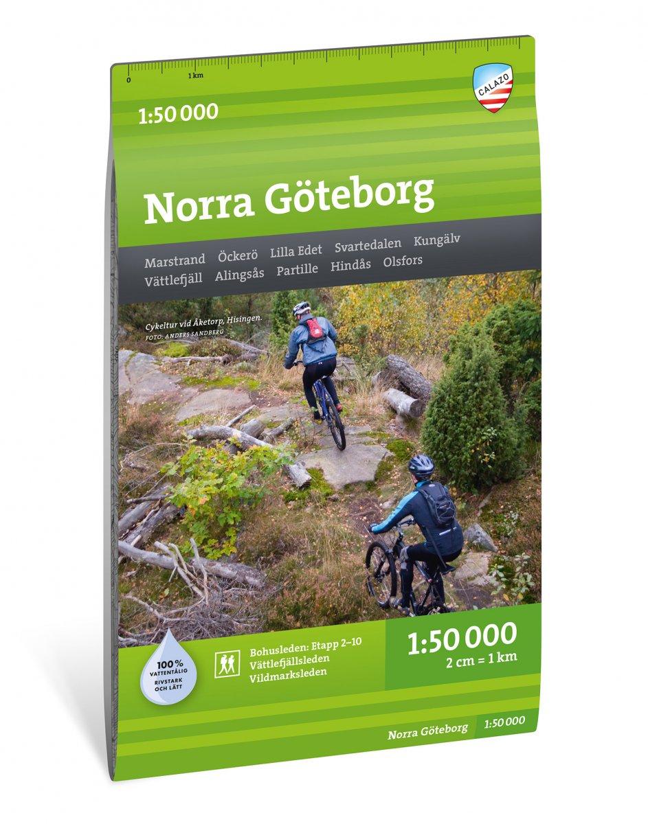 Den här norra kartan täcker bland annat Vättlefjäll, Marsstrand, Mjörn, Alingsås, Deljsöområdet och Hindås.