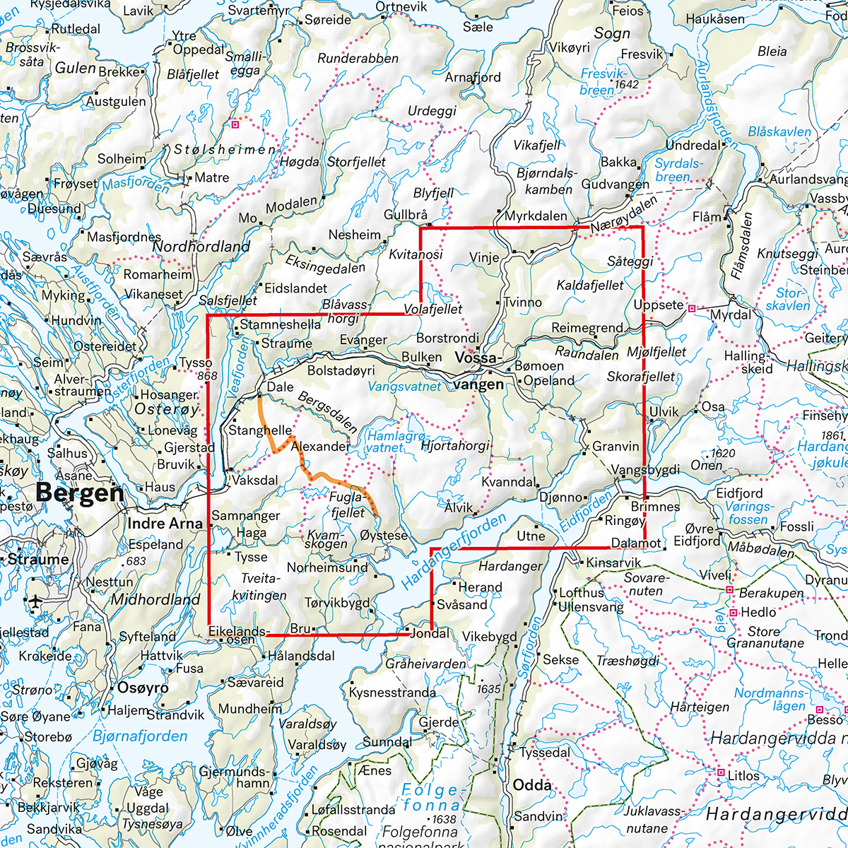 Kartet er en del av den moderne kartserien fra Calazo, som benytter unik terrenginformasjon basert på laserskanning fra fly, noe som gir enestående nøyaktighet i detaljene. Det omfatter hytter drevet både av DNT og andre aktører, og viser markerte turruter i området. Kartet egner seg også godt for vinterbruk, med inntegnede vinterruter og preparerte skiløyper.